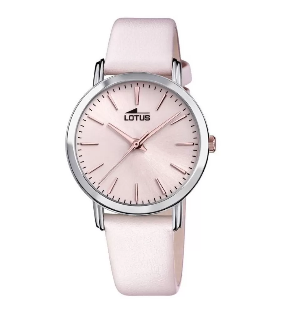 Hodinky Lotus L18738/2 z kolekce Trendy zaujmou svým jemným a ženským designem, který je ideální pro každodenní nošení i elegantnější příležitosti. Dominantním prvkem je růžový ciferník doplněný jednoduchými indexy a decentními ručičkami, které zajišťují dobrou přehlednost a zároveň působí velmi stylově. Pouzdro z kvalitní nerezové oceli dodává hodinkám odolnost a dlouhou životnost, zatímco kožený řemínek v ladícím růžovém odstínu zajišťuje pohodlné nošení a perfektní přizpůsobení zápěstí. Celkový vzhled působí harmonicky a moderně.