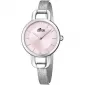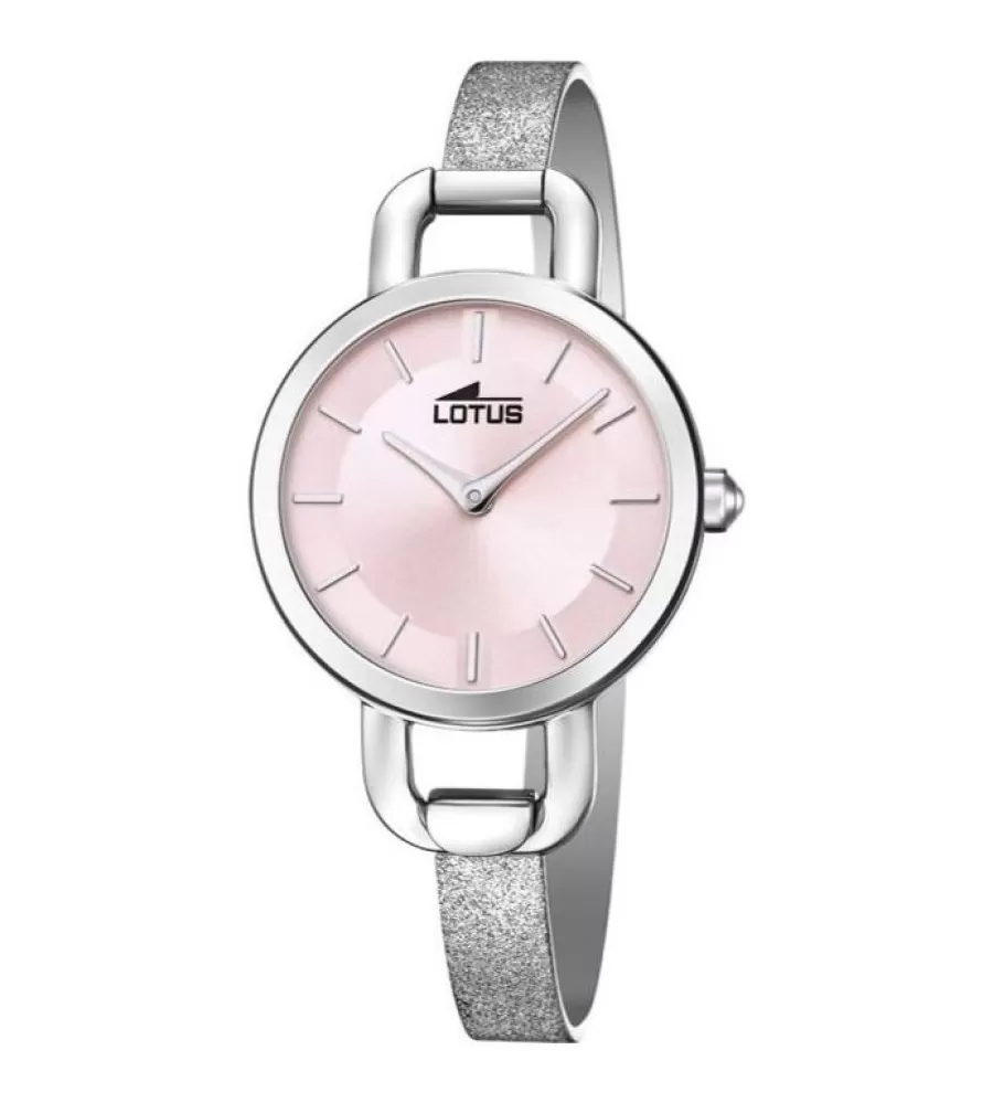 Hodinky Lotus L18746/2 z kolekce Bliss zaujmou svým jemným a elegantním designem, který podtrhuje ženskost a smysl pro detail. Stříbrné pouzdro z kvalitní nerezové oceli plynule navazuje na úzký tah, díky čemuž hodinky působí velmi lehce a komfortně na zápěstí. Ciferník je navržen v minimalistickém stylu, doplněný pouze decentními ručičkami a jednoduchými indexy, což zajišťuje výbornou přehlednost a nadčasový vzhled. Díky čistému provedení se hodinky snadno kombinují s jakýmkoliv outfitem.