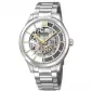 Pánské hodinky na ocelovém tahu, které na první pohled zaujmou svým skeletovaným číselníkem nabízejícím průhled na mechanický strojek s automatickým nátahem. Číselník doplněný zlatými ručičkami a indexy je chráněn safírovým sklem.