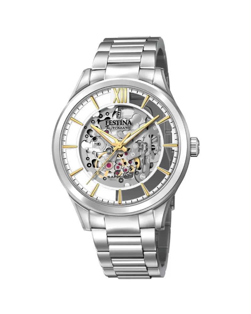 Krásná a elegantní kolekce automatických mechanických hodinek Festina. Velmi oblíbená kolekce, které v sobě skrývá kus pravé tradiční hodinařiny. Nosit na ruce automatický mechanický strojek je pro milovníky hodinek doslova poklad. U dámských modelů dokonce můžeme na mechanický strojek nahlídnout skrz otvor na číselníku na přední straně hodinek.