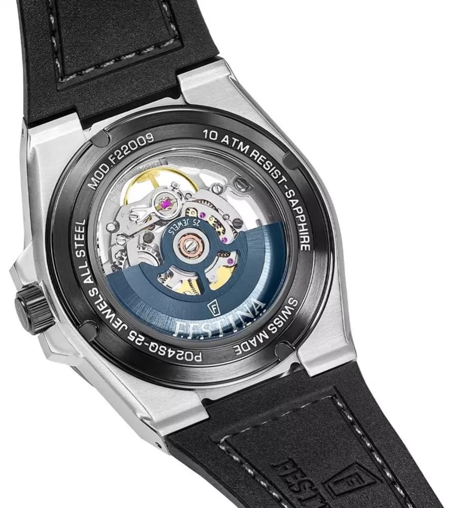 Hodinky jsou sportovně-elegantní pánský model s automatickým strojkem, který kombinuje precizní mechaniku s moderním vzhledem. Robustní pouzdro o průměru 42 mm je doplněno odolným safírovým sklíčkem a průhledným dýnkem, které umožňuje sledovat chod strojku. Řemínek je vyroben z kombinace kůže a gumy pro pohodlné nošení. Hodinky jsou vodotěsné do 10 ATM, takže zvládnou plavání i běžný kontakt s vodou. Mechanický strojek s automatickým nátahem má rezervu chodu přibližně 38 hodin a luminiscenční povrch ruček a indexů zajišťuje dobrou čitelnost i za horšího světla.