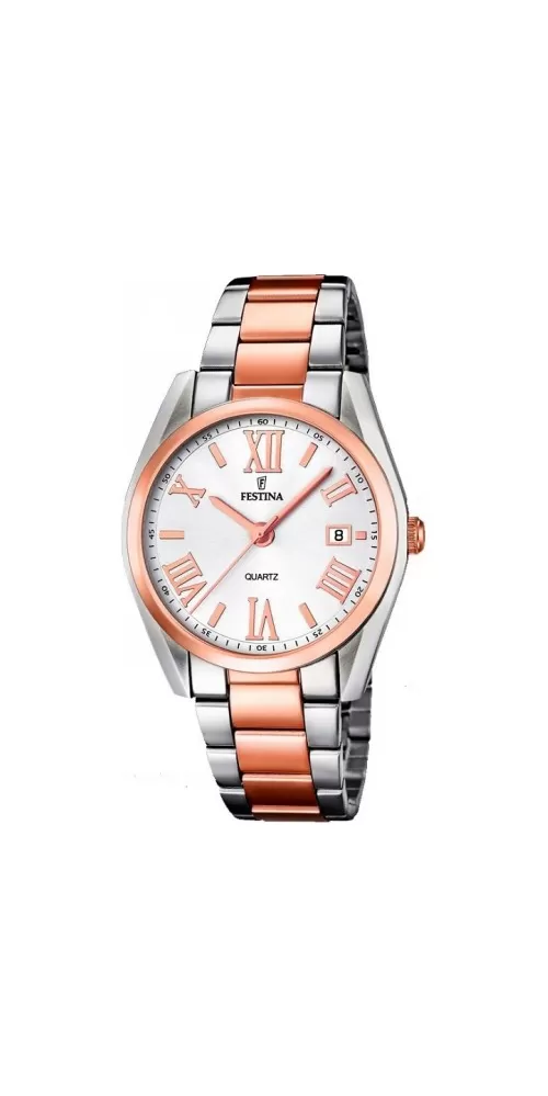 Elegantní, detailně propracovaný model z kolekce TREND oblíbené značky FESTINA pro ženy. Hodinky jsou s částečně zlaceným ocelovým řemínkem v bronzové barvě a bílým ciferníkem. Hodinky jsou jednoduchého vzhledu, který bude slušet každé ženě a navíc disponují ukazatelem data.