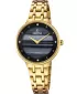 Elegantní dámské hodinky s vodotěsností 5 ATM na ocelovém tahu s PVD úpravou zlaté barvy. Černý číselník je ozdobený ručičkami v barvě pouzdra a čtyřmi zirkony na pozicích 3, 6 ,9 a 12 hodin