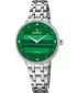 Elegantní dámské hodinky s vodotěsností 5 ATM na ocelovém tahu. Zelený číselník je ozdobený ručičkami v barvě pouzdra a čtyřmi zirkony na pozicích 3, 6 ,9 a 12 hodin.
