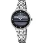 Elegantní dámské hodinky s vodotěsností 5 ATM na ocelovém tahu. Černý číselník je ozdobený ručičkami v barvě pouzdra a čtyřmi zirkony na pozicích 3, 6 ,9 a 12 hodin.