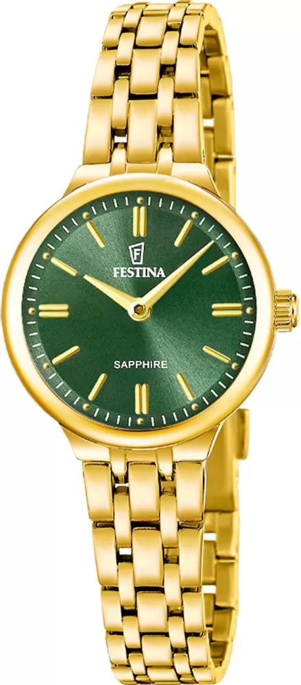 Hodinky Festina zaujmou svým čistým a elegantním designem, který nikdy nevyjde z módy. Jemné detaily dodávají modelu sofistikovaný vzhled vhodný pro každou příležitost. Hodinky s vodotěsností 50 metrů a odolným safírovým sklíčkem. Skvěle doplní jak každodenní outfit, tak i slavnostnější styl. Jsou ideální volbou pro ženy, které hledají nadčasový a stylový doplněk.