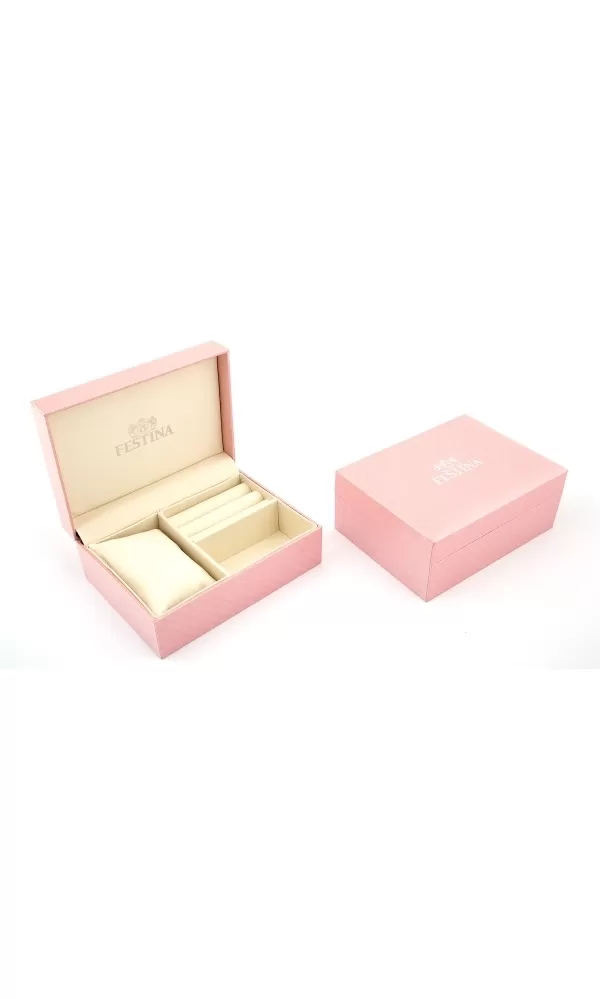 Značka Festina se pyšní více než stoletou tradicí na světovém trhu, která začíná roku 1902 v jedné švýcarské hodinářské manufaktuře v městečku La Chaux de Fonds. Věnovala se výrobě mechanických hodinek a to do roku 1984, kdy značku převzal Miguel Rodriquez a začali se stojky quartzovými. Nyní je značka Festina součástí skupiny Festina Group se sídlem v Barceloně a s výrobními centry ve Švýcarsku, Španělsku a Asii. Své hodinky dodává do hodinářství po celém světě. Do povědomí zákazníků se zapsala především modelovou řadou Tour de France. Festina Vám však může nabídnout celé spektrum dámských i pánských modelů od sportovních, jako je řada Tour de France, tak i elegantní kolekce jako je Mademoiselle. Hodinky značky FESTINAnikdy nezaměníte s jinou značkou. Jsou originální, nápadité a budou zároveň i dokonalým šperkem. Švýcarská značka hodinek FESTINA vyniká svým moderním designem a prvotřídní kvalitou. A to všechno za velice příznivou cenu.