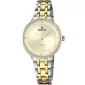 Elegantní model dámských hodinek je vyroben z chirurgické ocele, která je místy zlacená technologií PVD v barvě žlutého zlata. Předností zlacení technologií PVD je vysoká tvrdost a odolnost proti otěru! Jedná se o silnou vrstvu, která proniká do původního materiálu. Zlacení technologií PVD se dá srovnat s přibližně 12 mikrony galvanického zlacení, což je vysoká hodnota, která při běžném nošení vydrží až 12 let. Hodinky mají kulaté pouzdro s přehledným ciferník, který zdobí kamínky broušené do briliantového brusu.