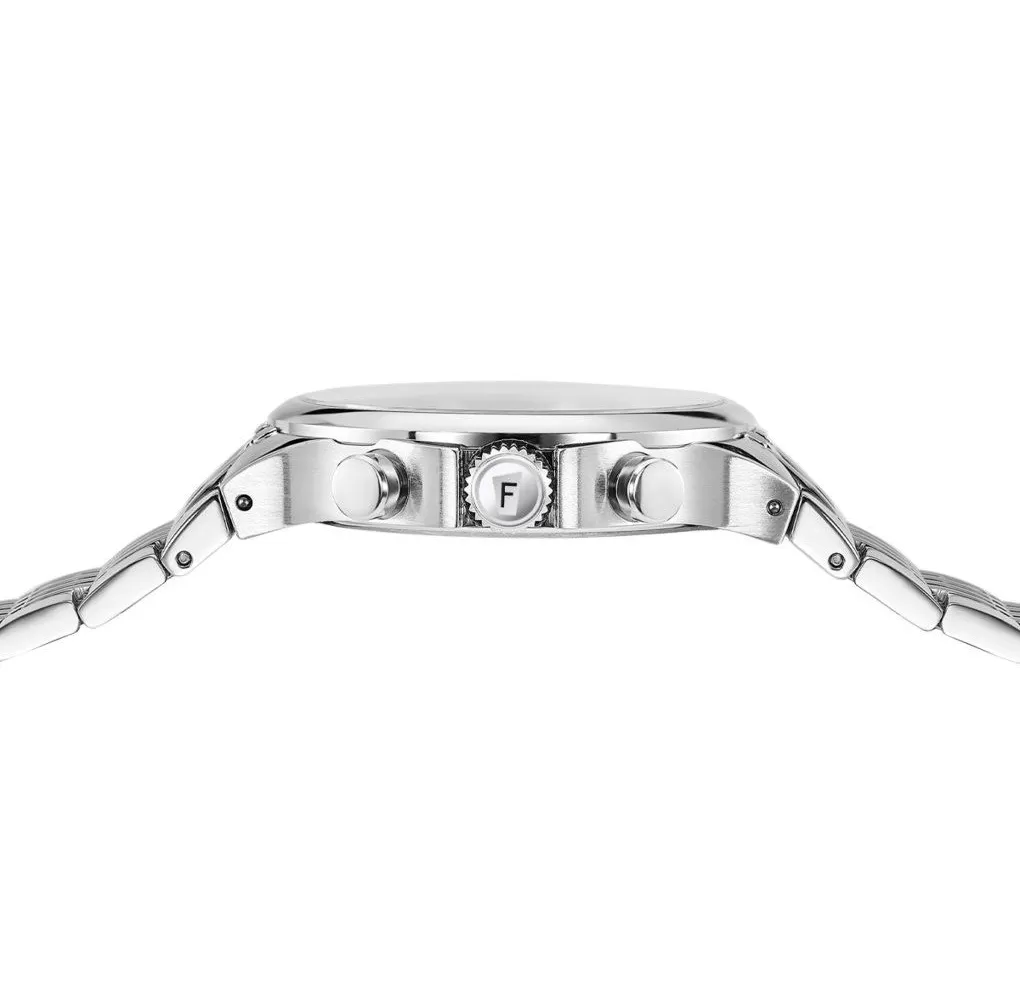 Pánské klasické quartzové hodinky na ocelovém náramku jsou vhodné pro každodenní nošení. Číselník je chráněný safírovým sklem zobrazuje sčítače stopek a indikaci data. Tyto hodinky s ocelovým pouzdrem o průměru 39,3 mm disponují vodotěsností 50 metrů.