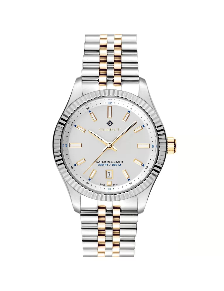 Decentní dámské náramkové hodinky Gant jsou navrženy tak, aby skvěle padly ženskému zápěstí. Hodinky jsou vyrobeny z vysoce kvalitní nerezové ocele. Ocel je místy ošetřena PVD povrchovou úpravou v barvě žlutého zlata. Kulaté pouzdro je vybaveno spolehlivým strojkem a baterií s dvouletou životností. Bílý číselník má k dispozici jednoduché ručičky a indexy hodin. Na pozici šesté hodiny najdete datum. Hodinky jsou vhodné pro každodenní nošení i do společnosti.