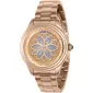 Nádherný model dámských hodinek je vyroben z kvalitní nerezové ocele, která je ošetřena PVD povrchovou úpravou v barvě růžového zlata. Kulaté pouzdro skrývá japonský strojek Seiko PC21. Tvrzené minerální sklo chrání číselník, který je u tohoto modelu zaručeně dominantou. Zdobí ho motiv květiny, který doplňují decentní ručičky a indexy hodin. Za povšimnutí stojí i korunka, která je zvýrazněna modrým kamenem. Hodinky mají k dispozici kvalitní vodotěsnost 100M.