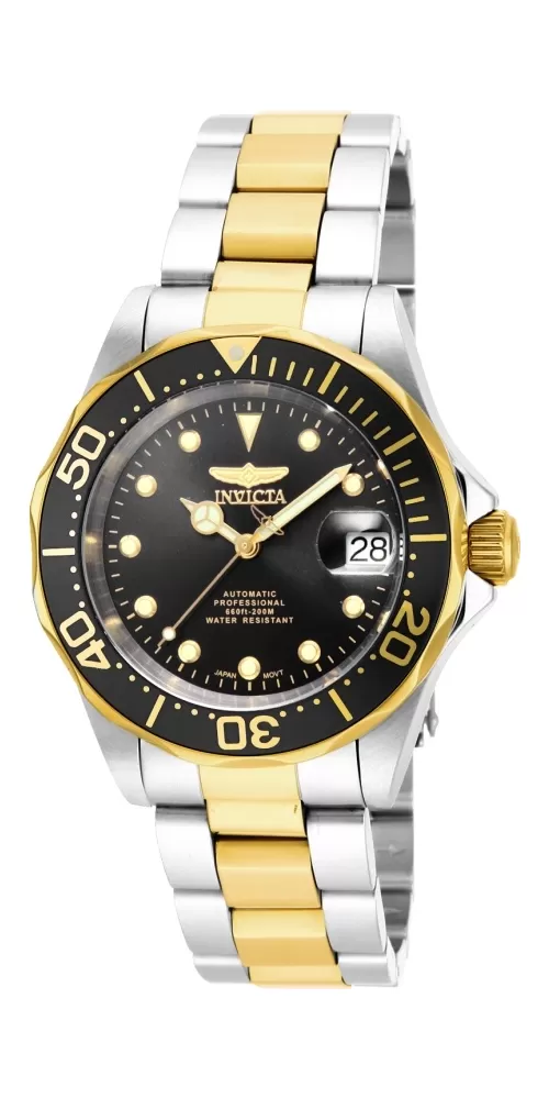 Elegantní model pro muže je vyroben z vysoce kvalitní nerezové ocele, která je místy ošetřena PVD povrchovou úpravou v barvě žlutého zlata. Kulaté pouzdro je vybaveno mechanickým strojkem s automatickým nátahem. Seiko NH35 s rezerva chodu 41h, 21.600 BPH (3Hz). Pouzdro je také zvýrazněno jednosměrnou lunetou v černé barvě. Číselník má k dispozici datum, umístěn na pozici tří hodin a nepochybně ručičky s indexy potažené luminiscenční vrstvou.