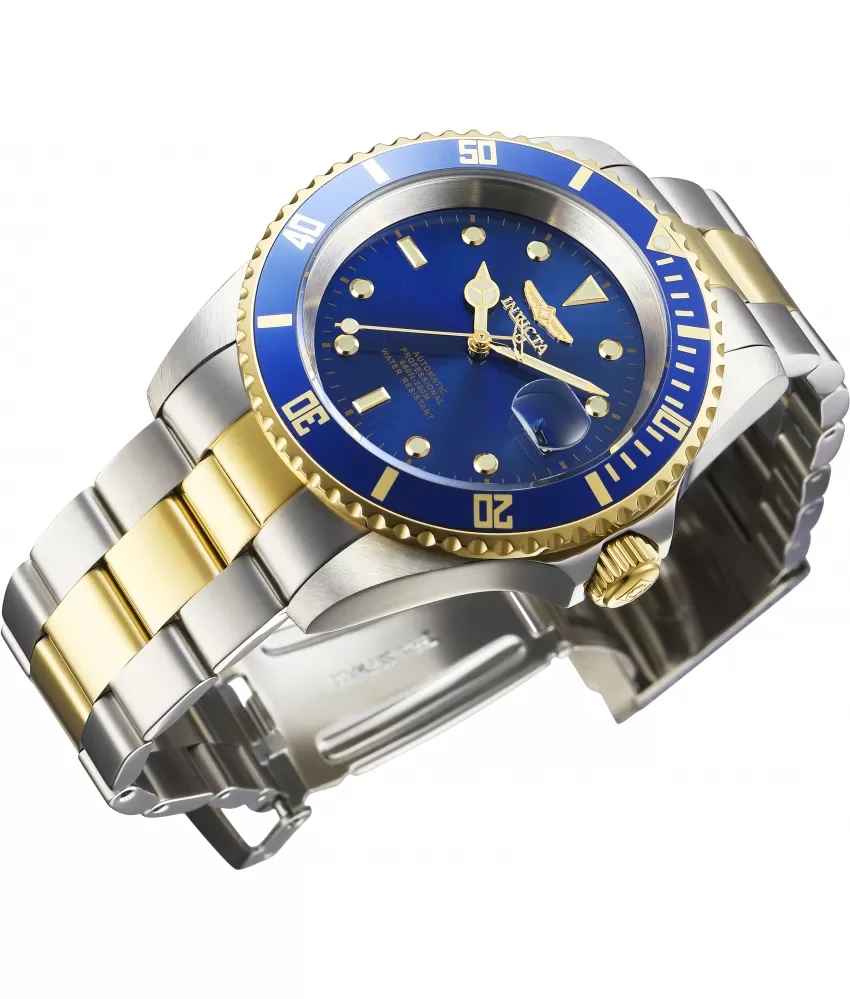 Hodinky Invicta Pro Diver 8928OBXL jsou sportovní pánský model inspirovaný klasickými potápěčskými hodinkami. Mají robustní pouzdro z nerezové oceli o průměru 43 mm, které působí masivně a odolně. Přehledný modrý ciferník je doplněn luminiscenčními ručičkami a indexy pro dobrou čitelnost i ve zhoršených světelných podmínkách. Minerální sklíčko typu Flame Fusion chrání ciferník před poškrábáním a nárazy. Mechanický strojek s automatickým nátahem Seiko NH35A zajišťuje spolehlivý a přesný chod bez nutnosti baterie. Jednosměrně otočná luneta umožňuje snadné měření času při potápění. Šroubovací korunka a průhledné dýnko podtrhují sportovní charakter hodinek. Voděodolnost 200 metrů umožňuje bezpečné používání při plavání, šnorchlování i rekreačním potápění.