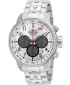 Ciferník je stříbrný s výraznými arabskými číslicemi a třemi subciferníky, které představují funkce chronografu, takže hodinky kromě základního času nabízí i stopky pro měření kratších intervalů. Luminiscenční ručičky a indexy usnadňují čtení času i ve špatných světelných podmínkách, zatímco okénko s datem mezi čtvrtou a pátou hodinou zvyšuje jejich každodenní praktičnost.