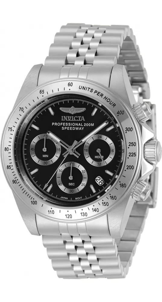 Klasické pánské hodinky jsou vyrobeny z vysoce kvalitní nerezové ocele. Kulaté pouzdro je vybaveno strojkem Seiko VD53 a baterií s dvouletou životností. Pouzdro je zdobenou pevnou tachymetrickou lunetou. Číselník v černé barvě má k dispozici chronograf a datum, který najdete umístěn na pozici mezi čtvrtou a pátou hodinou. Číselník je přehledný a doplňují ho ručičky a indexy hodin potažené luminiscenční vrstvou. Kvalitní vodotěsnost 200M je samozřejmostí.