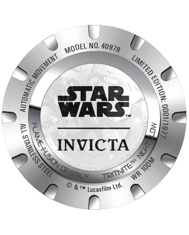 Rozšiřte svou sbírku hodinek z limitované edice Star Wars. Hodinky mají kulaté pouzdro vyrobeno z vysoce kvalitní nerezové ocele, která je potažena PVD povrchovou úpravou v černé barvě. Pouzdro doplňuje pevná, minutová luneta s arabskými číslicemi. Tematický číselník obsahuje jednoduché ručičky a indexy hodin s luminiscenční vrstvou. Silikonový řemínek už jen podtrhuje hvězdný design hodinek. Hodinky pohání mechanický strojek s automatickým nátahem JSD-006ZY.