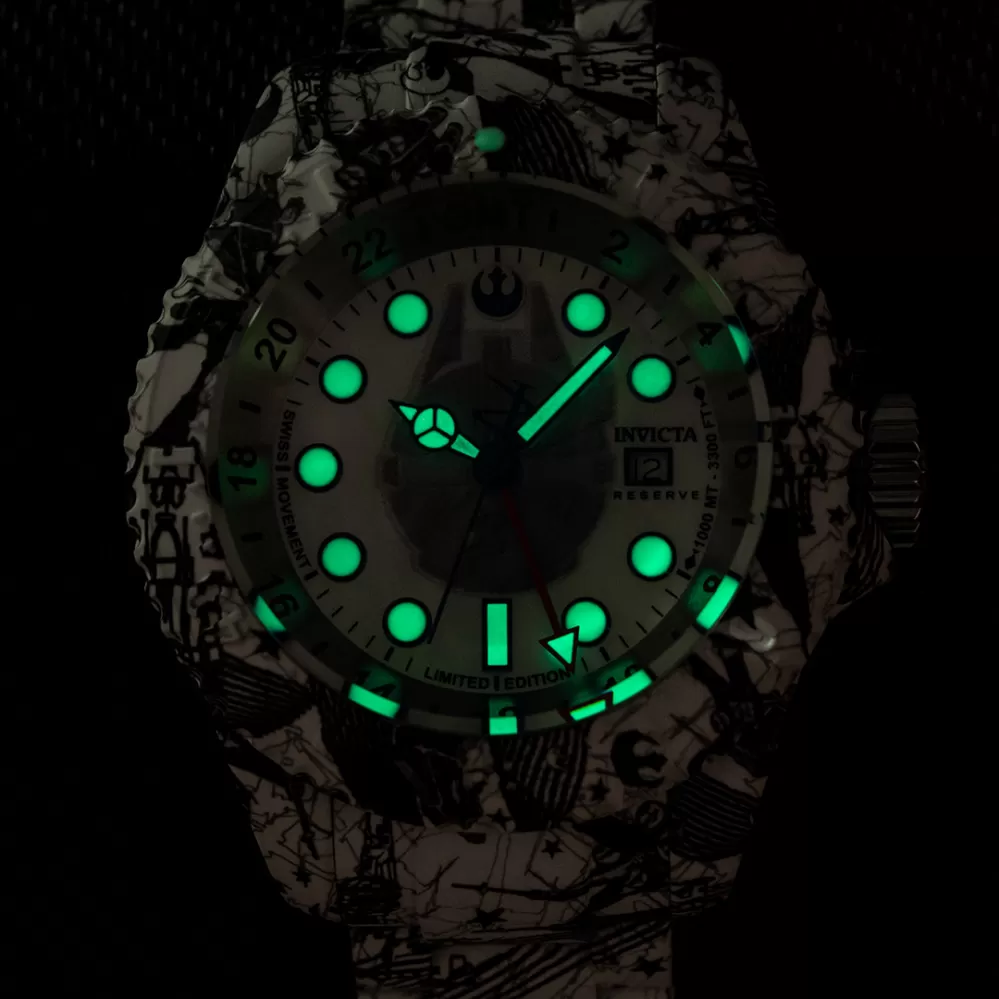 Velmi originální model z limitované edice Star Wars je vyroben z vysoce kvalitní nerezové ocele, která je opatřena PVD povrchovou úpravou. Masivní pouzdro je vybaveno švýcarským strojkem Ronda 515.24H s přesnost -10/+20s za měsíc a baterií 371 s tříletou životností. Číselník mí k dispozici datum, který najdete na pozici tří hodin. Šokující vodotěsnost 1000M, jistě mnohé překvapí.