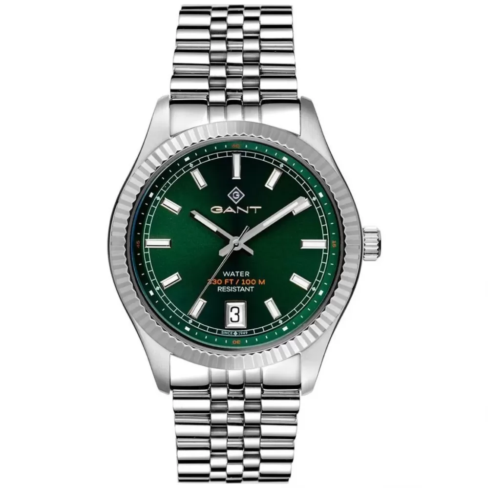 Pánské náramkové hodinky Gant jsou navrženy tak, aby skvěle padly pánskému zápěstí. Hodinky jsou vyrobeny z vysoce kvalitní nerezové ocele. Kulaté pouzdro je vybaveno spolehlivým strojkem a baterií s dvouletou životností. Zelený číselník má k dispozici jednoduché ručičky a indexy hodin. Na pozici šesté hodiny najdete datum. Hodinky jsou vhodné pro každodenní nošení i do společnosti.