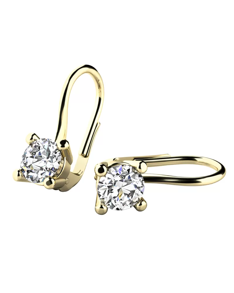 Luxusní model náušnic zdobí větší oslňující zirkon briliantového brusu. Tyto nádherné, zářivé náušnice jsou vyrobeny ze žlutého čtrnáctikarátového zlata - 585/1000 v lesklé povrchové úpravě. Visací náušnice jsou zdobeny jedním zirkonem briliantového brusu, který je vsazen uprostřed náušnic. Díky preciznímu brusu zirkony získaly dokonalou brilanci, skvěle odráží světlo a září.
