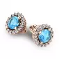 Nádherné luxusní dámské náušnice pecky osázené středovým syntetickým akvamarínem a zirkony budou ideálním dárkem pro každou ženu. Náušnice jsou vyrobeny z růžového čtrnáctikarátového zlata - 585/1000 v lesklé povrchové úpravě. Vsazené zirkony jsou vybroušeny dokonalým briliantovým brusem, díky kterému dokonale odráží světlo a jejich brilance neuvěřitelně září z každého úhlu pohledu! Všechny kameny jsou pevně uchyceny krapnami. Vsazování kamenů provádějí naši nejzkušenější mistři zlatníci ručně pod mikroskopem s přesností na 0,01mm a proto nehrozí vypadnutí kamínků jako to bývá u strojně vyráběných náušnic. Celé náušnice působí dokonalým a luxusním dojmem! Náušnice se zapínají na šroubek. Šroubek pro balónek je umístěný cca 2 mm pod horní okraj náušnice a tedy krásně zakrývá dírku v uchu.