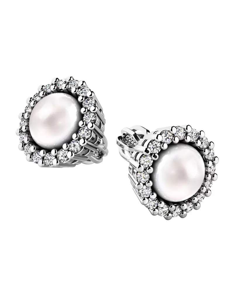 Nádherné dámské náušnice pecky zdobené sladkovodními perlami a zirkony budou ideálním dárkem pro každou ženu. Náušnice jsou vyrobeny z bílého čtrnáctikarátového zlata - 585/1000 v lesklé povrchové úpravě. Perlu střeží dokola vsazené zirkony briliantového brusu, které jsou pevně uchyceny krapnami. Vsazování zirkonů provádějí naši nejzkušenější mistři zlatníci ručně pod mikroskopem s přesností na 0,01mm a proto nehrozí vypadnutí kamínků jako to bývá u strojně vyráběných náušnic. Náušnice se zapínají na šroubek. Šroubek pro balónek je umístěný cca 2 mm pod horní okraj náušnice a tedy krásně zakrývá dírku v uchu.