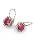 Nádherné luxusní dámské náušnice osázené středovým syntetickým rubínem a zirkony budou ideálním dárkem pro každou ženu. Náušnice jsou vyrobeny z růžového čtrnáctikarátového zlata - 585/1000 v lesklé povrchové úpravě. Vsazené zirkony jsou vybroušeny dokonalým briliantovým brusem, díky kterému dokonale odráží světlo a jejich brilance neuvěřitelně září z každého úhlu pohledu! Všechny kameny jsou pevně uchyceny krapnami. Vsazování kamenů provádějí naši nejzkušenější mistři zlatníci ručně pod mikroskopem s přesností na 0,01mm a proto nehrozí vypadnutí kamínků jako to bývá u strojně vyráběných náušnic. Celé náušnice působí dokonalým a luxusním dojmem!