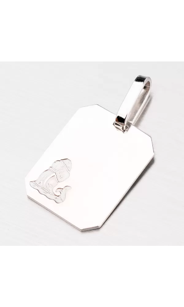 Přívěsek s motivem zvěrokruhu - Vodnář (20.1. - 18. 2.) - je vyrobený ze stříbra o ryzosti 925/1000. Destička je obdelníkového tvaru v lesklé povrchové úpravě s vyrytým a zmatněným znamením. Pro vysokou odolnost přívěsku je povrch zušlechtěn rhodiováním. Rhodium je ušlechtilý drahý kov ze skupiny platinových kovů. Rhodiováním stříbrných šperků galvanickým nanášením tohoto drahého kovu se stává povrch šperku tvrdší, stálejší a odolnější vůči vnějším vlivům jako je mechanický otěr, poškrábání, nabíhání stříbra, lidský pot, kosmetické přípravky a další. Rhodium je antialergické.