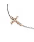 Náhrdelník je vyrobený z bílého a růžového čtrnáctikarátového zlata - 585/1000 a tvoří ho řetízek typu anker s lesklými facetami na každém očku. Facety jsou zhotoveny diamantovým nástrojem, který dodává vzniklým facetám krásný lesk a třpyt. Uprostřed řetízku je kříž. Celý náhrdelník je v lesklé povrchové úpravě. V křížku je vsazeno jedenáct kulatých diamantů briliantového brusu, který zajišťuje maximální brilanci vybroušených facet diamantů, dokonale odráží světlo a krásně září z každého úhlu pohledu! Diamanty jsou vsazené do krapen. Vsazování diamantů provádějí naši nejzkušenější mistři zlatníci ručně pod mikroskopem s přesností na 0,01mm a proto nehrozí vypadnutí kamínků jako to bývá u strojně vyráběných šperků.