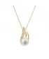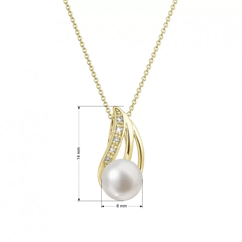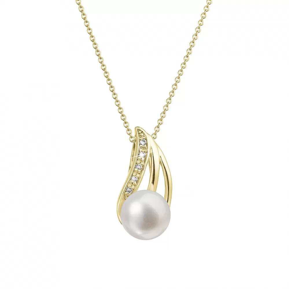 Zlatý 14 karátový náhrdelník s bílou říční perlou a brilianty 92PB00051