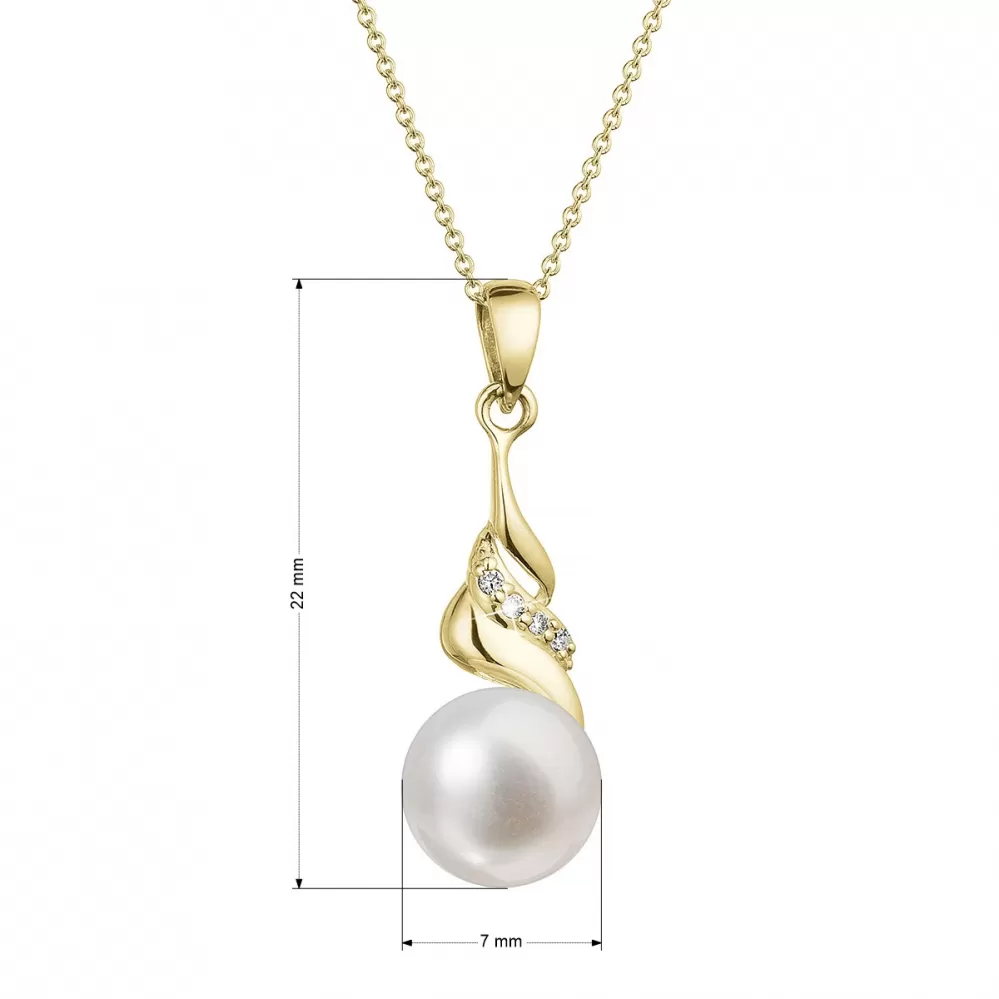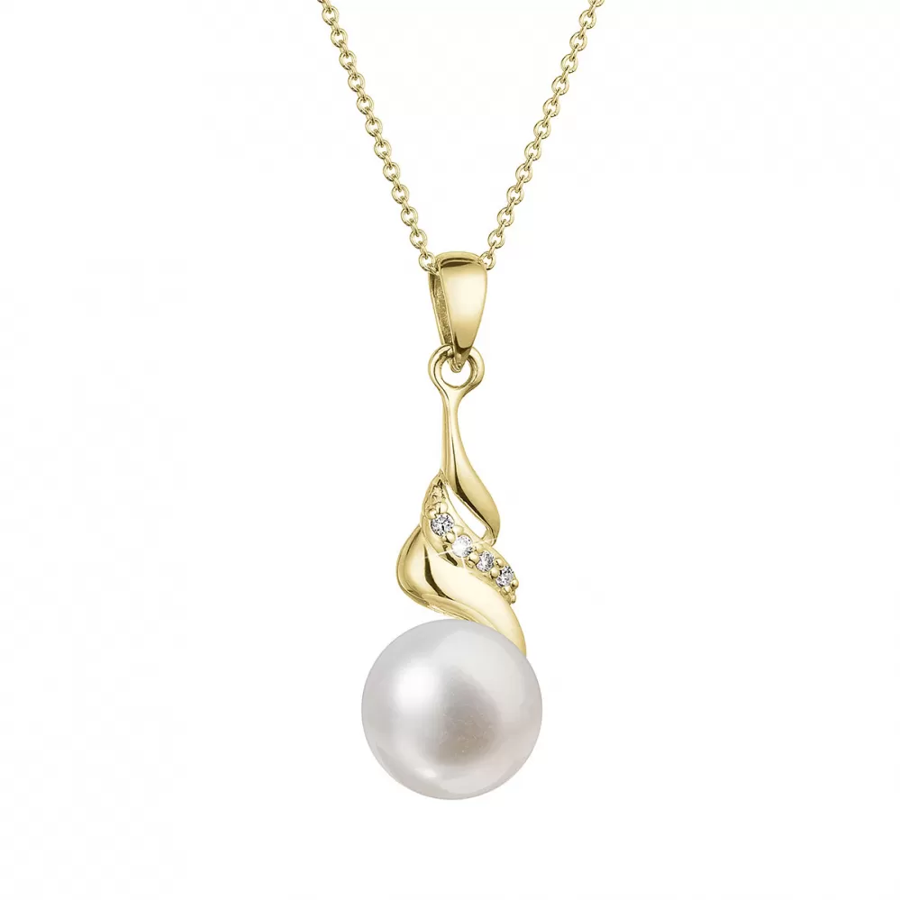 Zlatý 14 karátový náhrdelník s bílou říční perlou a brilianty 92PB00054