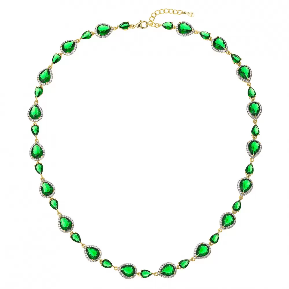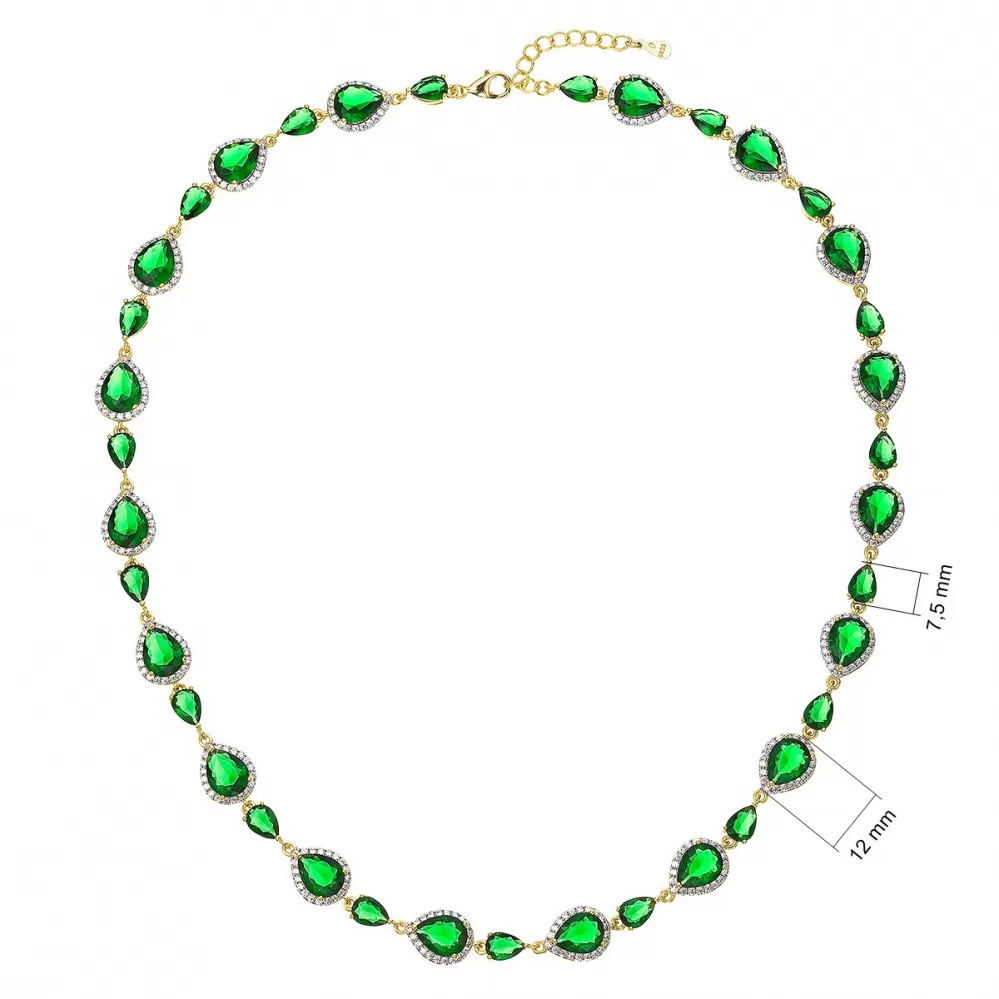 Luxusní pozlacený náhrdelník zelené kapky 12189.3