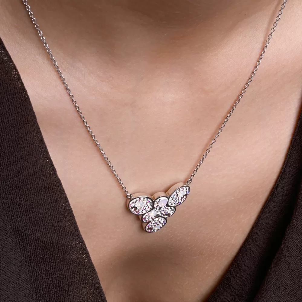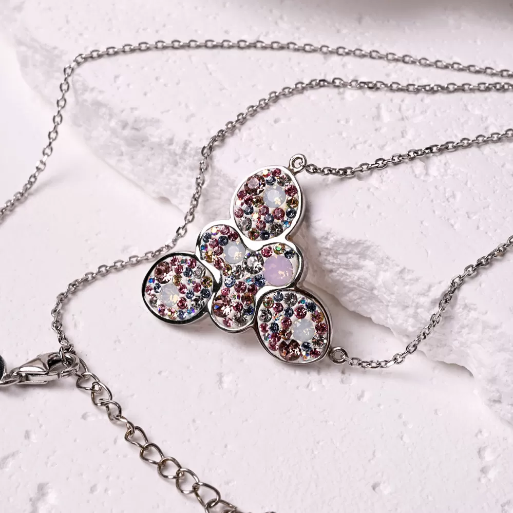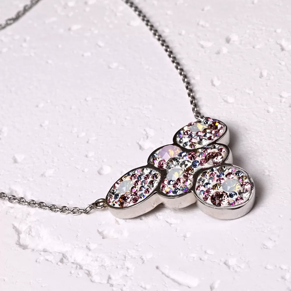 Nepřehlédnutelný náhrdelník, jehož dominantou je velký přívěsek se Swarovski krystaly v barvách magic rose, který zaujmou svým leskem. Skvěle se hodí k večernímu outfitu.