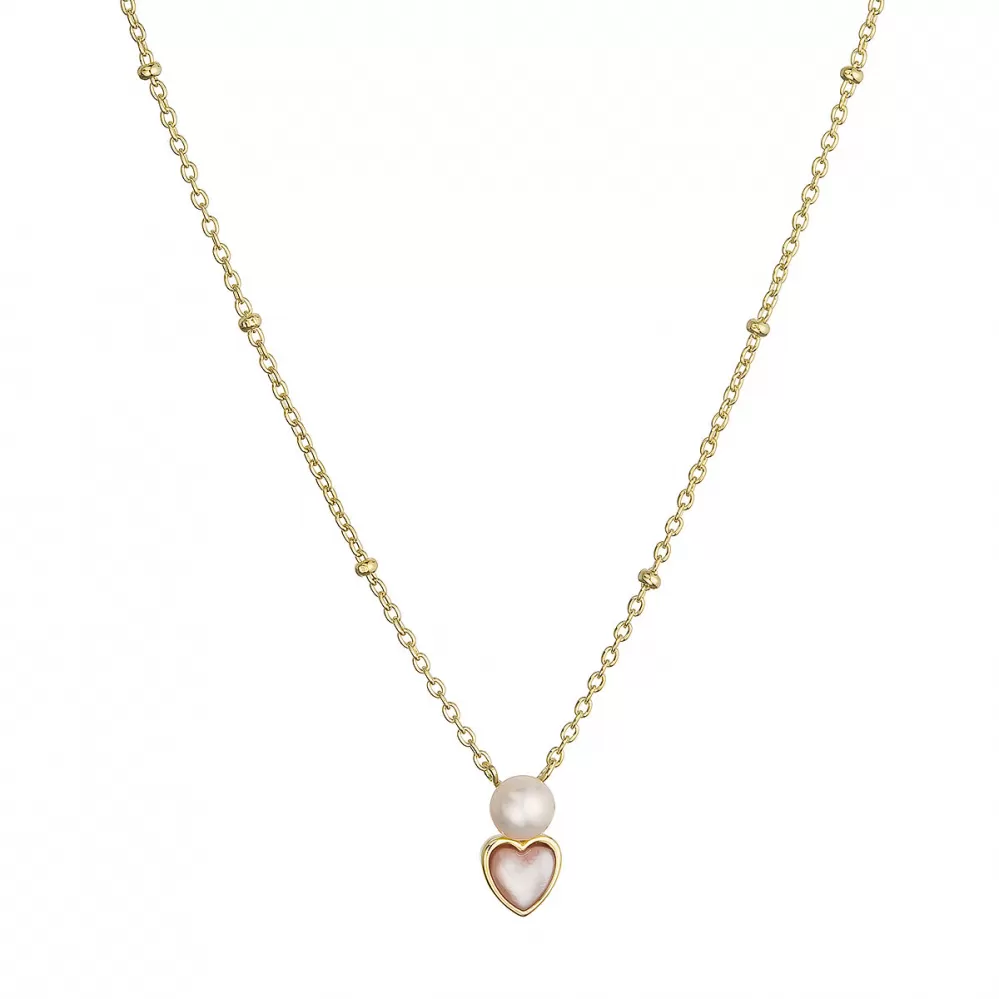 Pozlacený náhrdelník s říční perlou srdíčko 22055.1