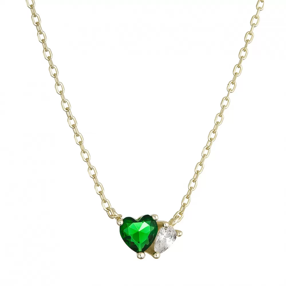 Pozlacený náhrdelník zelené srdíčko 12181.3
