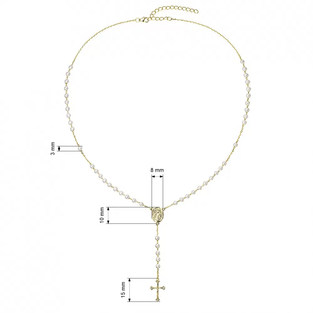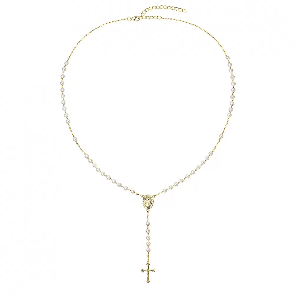 Pozlacený růženec s bílými říčními perlami 22062.1