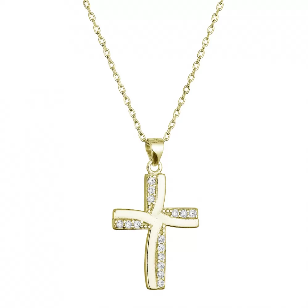 Pozlacený stříbrný náhrdelník kříž se zirkony 12135.1 crystal