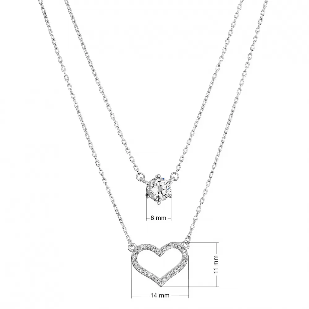 Stříbrný náhrdelník dvojitý se srdíčkem a zirkonem 12175.1