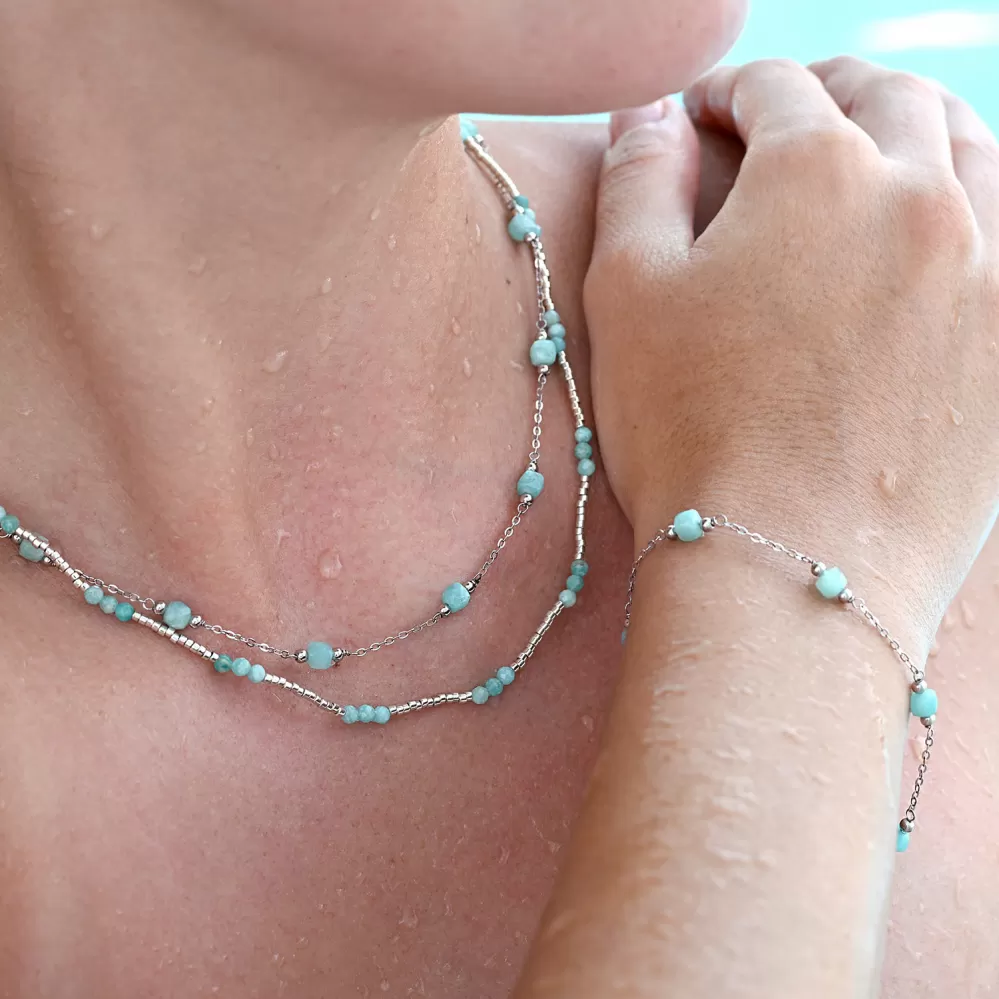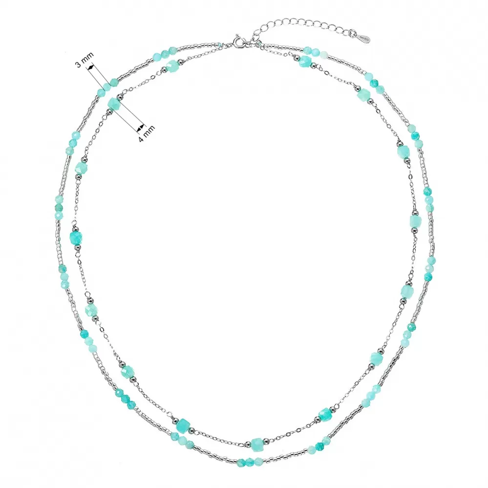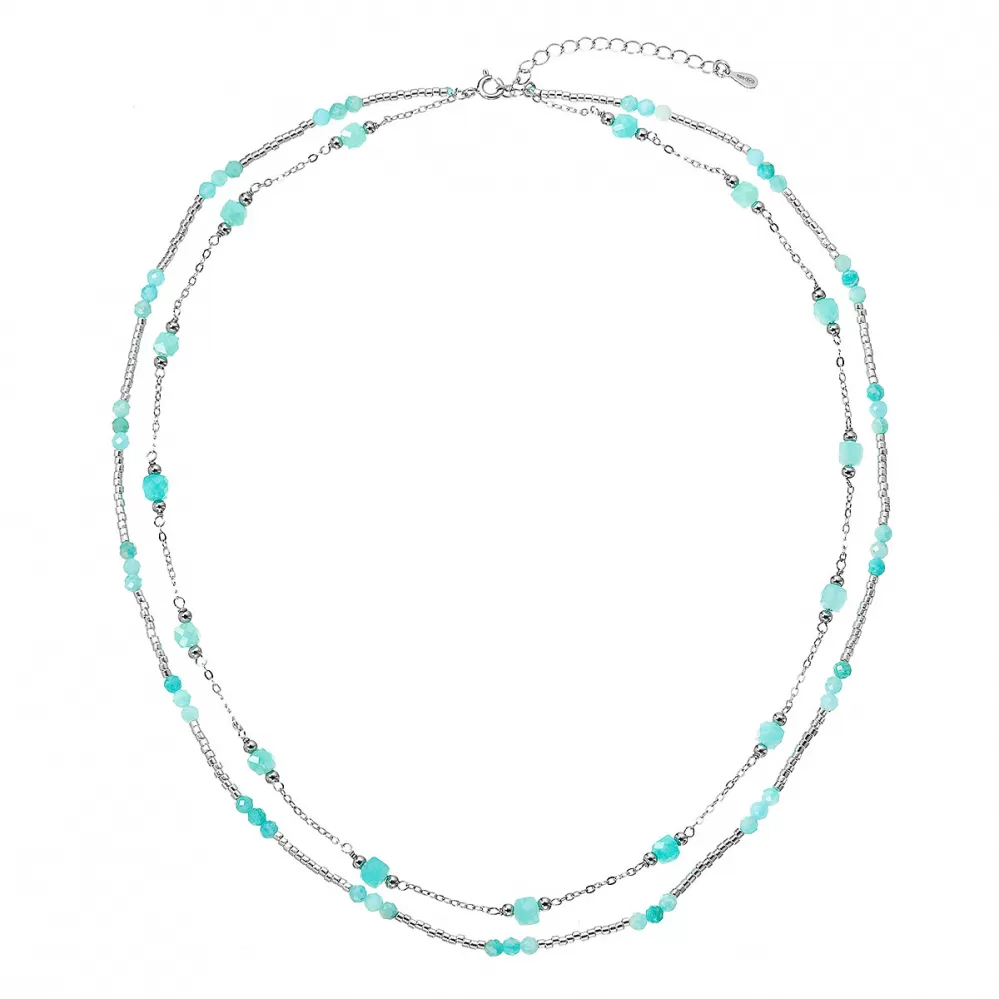 Okouzlující jemný dvouřadý náhrdelník s drobnými přírodními kamínky amazonity působí lehce a elegantně.