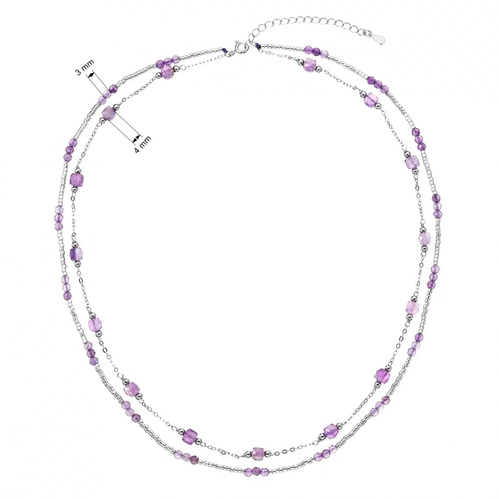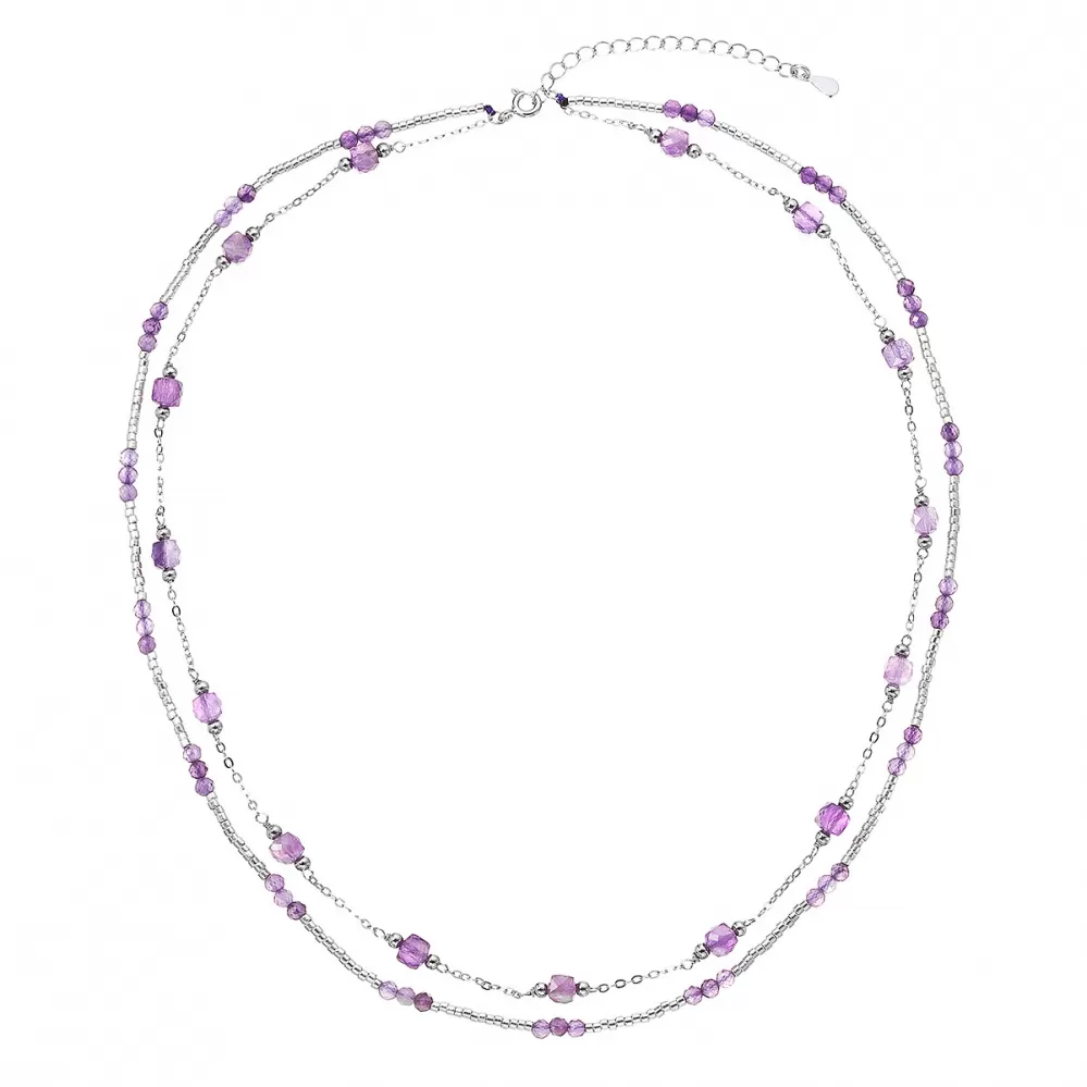 Okouzlující jemný dvouřadý náhrdelník s drobnými přírodními kamínky ametysty působí lehce a elegantně.
