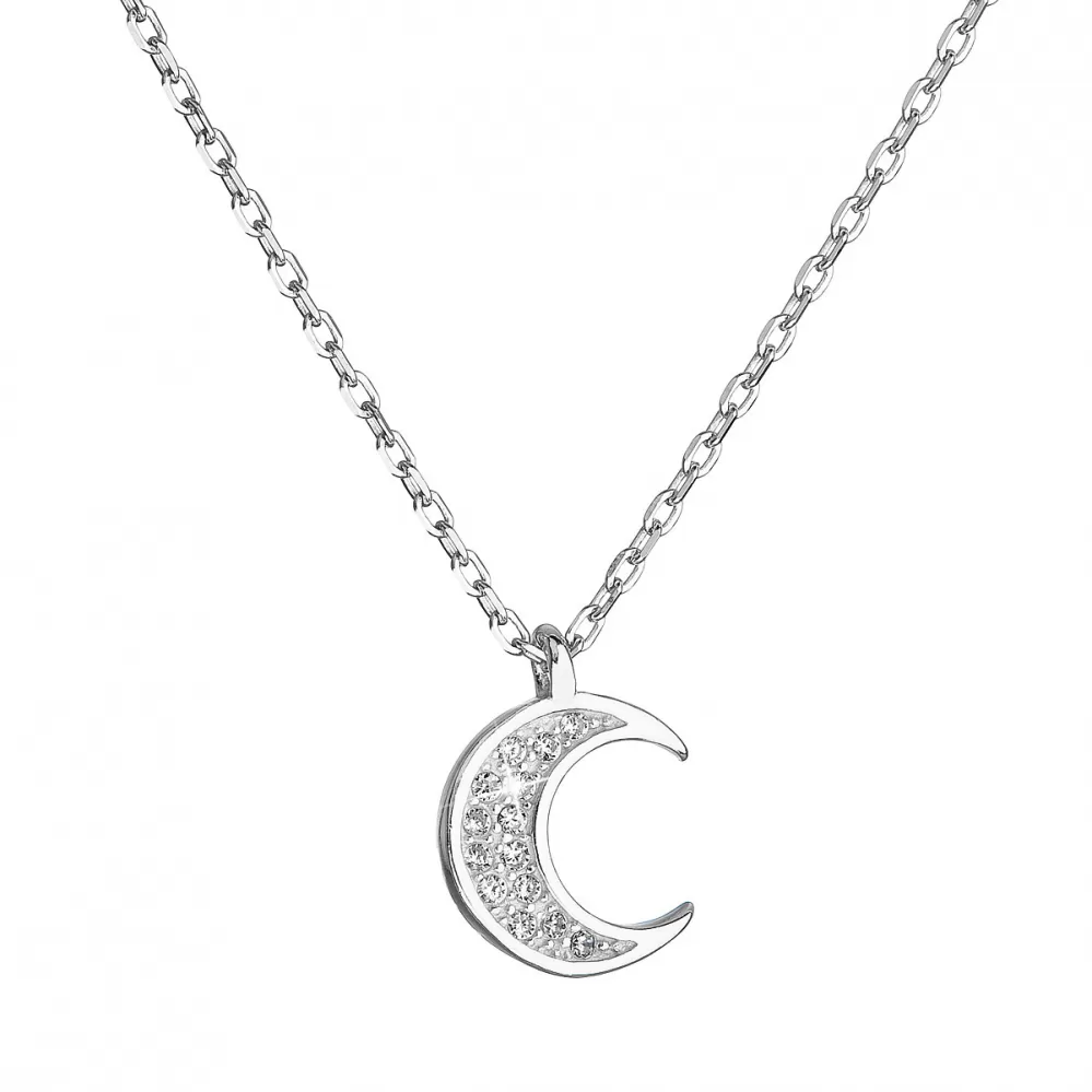 Stříbrný náhrdelník se zirkony bílý půlměsíc malý 12046.1