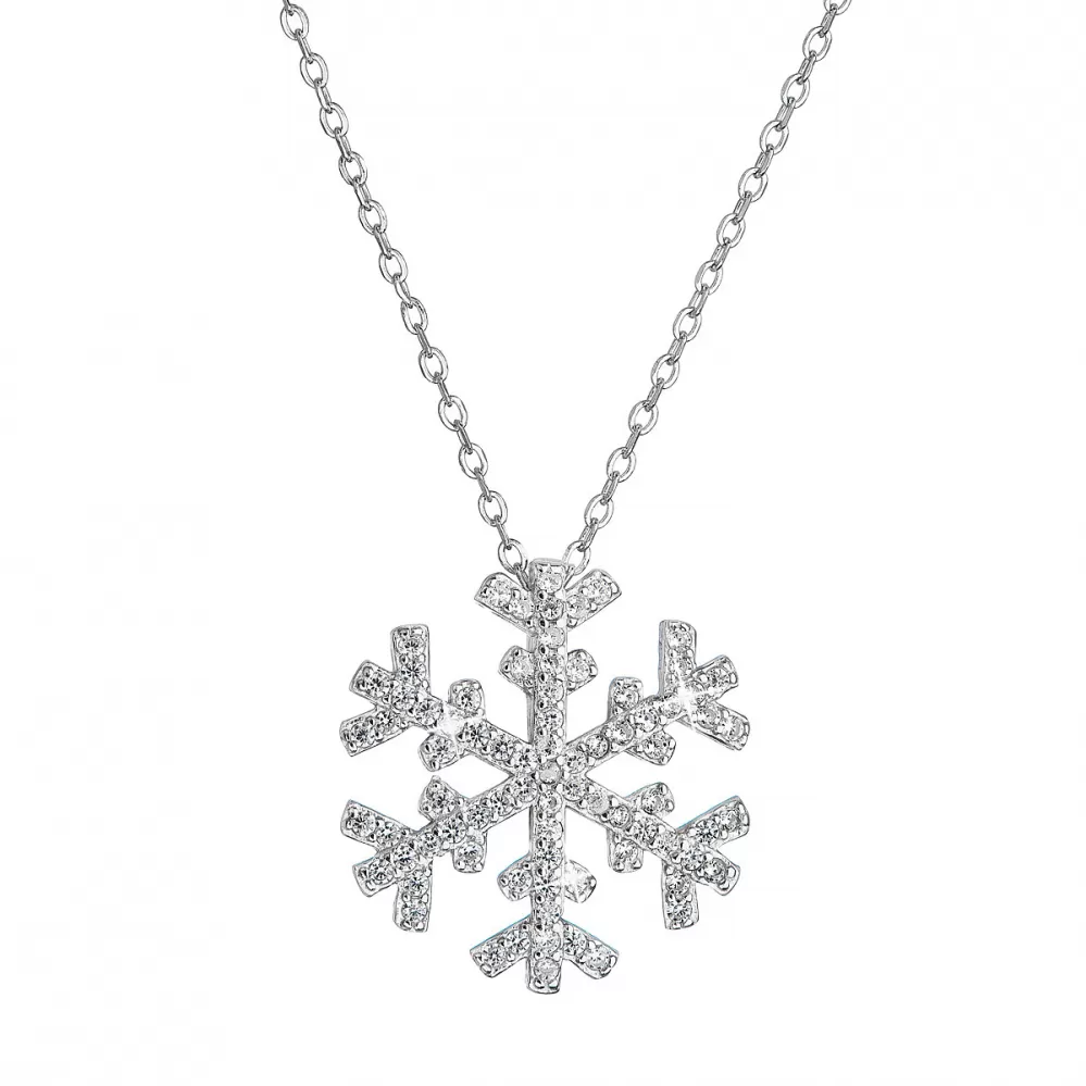 Stříbrný náhrdelník se zirkony sněhová vločka 12047.1