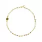 Náramek je vyroben ze žlutého 14 karátového zlata a má po obvodu malé barevné fazetované korálky.