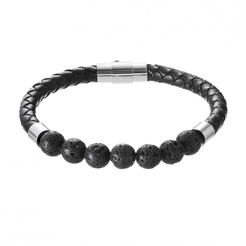 Náramek 43038.3 v černé barvě je vyroben z koženkového zapleteného pásku a pravých lávových kamenů. Šperky z lávových kamenů se vyrábějí již tisíce let, jelikož kámen má na lidský organismus silné pozitivní účinky - zásobuje tělo pozitivní energií a dodává pocit sebevědomí a odvahy.