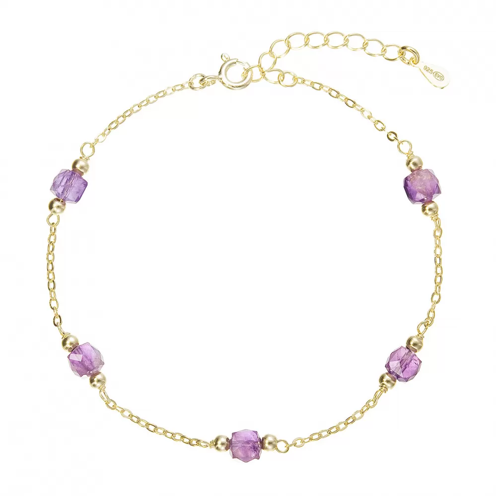 Jemný pozlacený náramek s drobnými fazetovanými ametysty v nádherné fialové barvě.