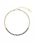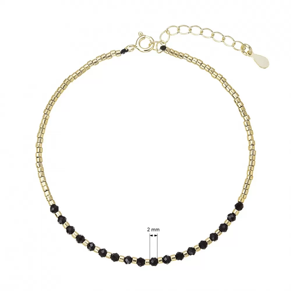 Tento jemný náramek je vyroben z kvalitního pozlaceného stříbra a zdoben pravými spinely. Skládá se z drobounkých zlatých korálků, které tvoří větší část náramku. Elegantní lehká čistá krása zlatých korálků střídající se s černými spinely je dokonalou kombinací.
