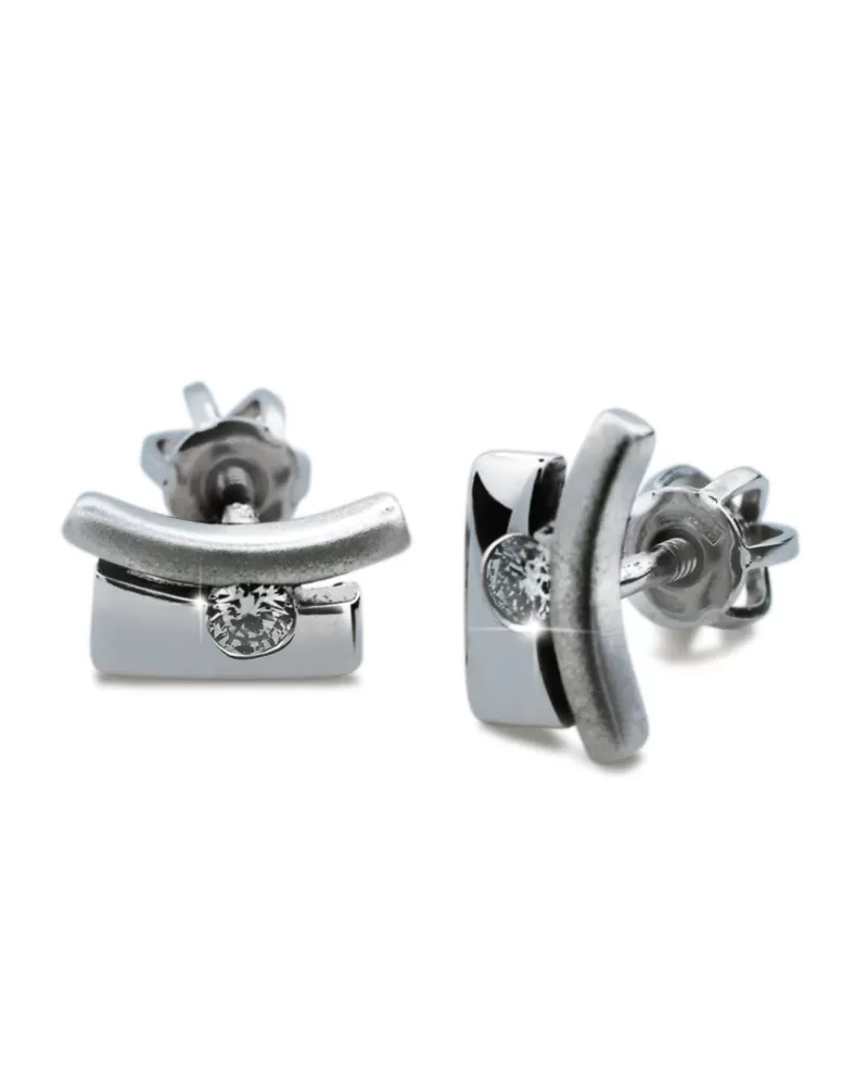 Jemné dámské náušnice s bílým zirkonem vyrobené z bílého čtrnácti karátového zlata 585/000 v kombinaci lesklé a matné povrchové úpravy se zapínáním na šroubky. Náušnice dodáváme nejen ve variantě z bílého, ale také ze žlutého zlata. Stačí si jen vybrat, která varianta by se líbila právě vám.