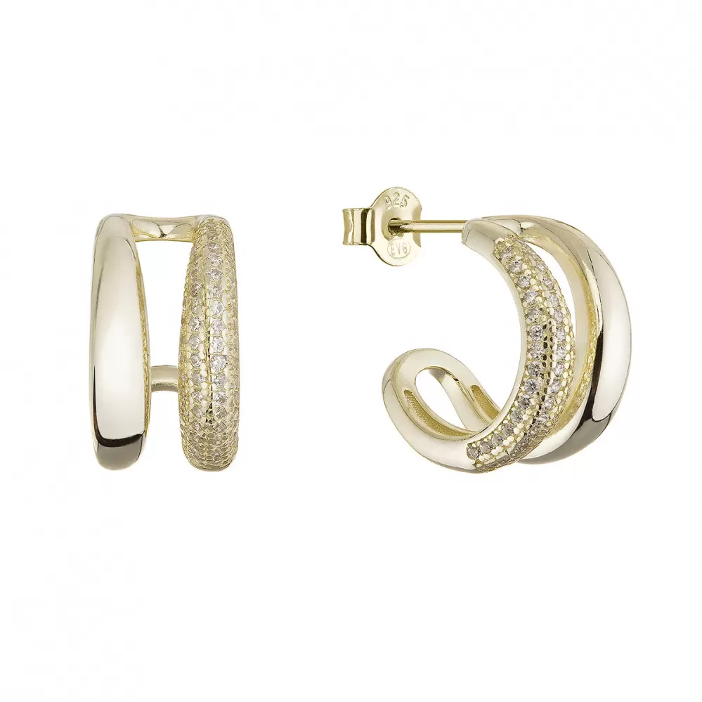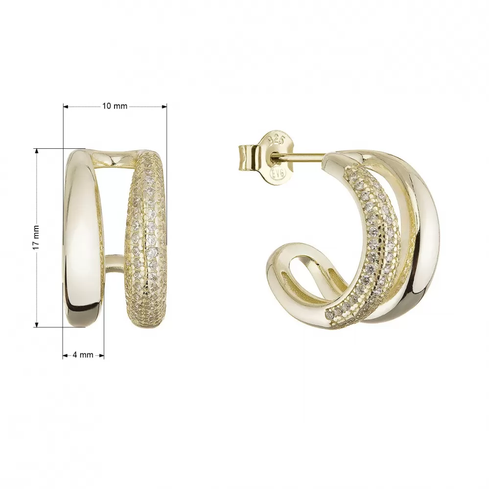 Náušnice jsou precizně zpracované ze stříbra ryzosti 925/1000, jehož povrch je jemně pozlacen. Zirkony lemované v jedné polovině kroužků vytváří jemnou hru odrazů, zatímco druhá část zůstává elegantně minimalistická. Každý pohyb hlavy tak promění váš look v malé umělecké dílo.