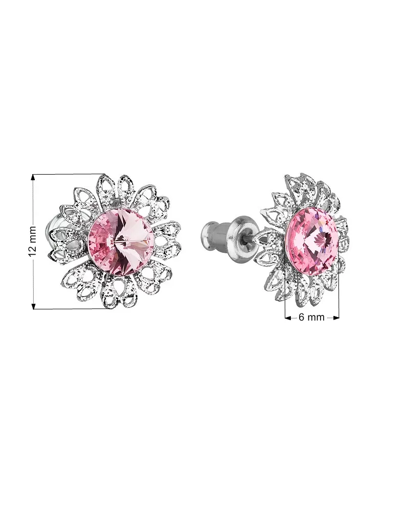 Bižuterní náušnice pecky 51042.3 light rose mají tvar kytičky, jejíž střed je zdoben kulatým jemně růžovým Swarovski krystalem. Náušnice se zapínají na puzetu, která je ochrání proti nechtěné ztrátě.