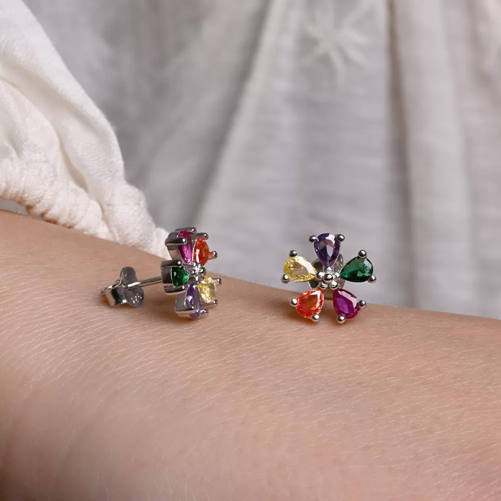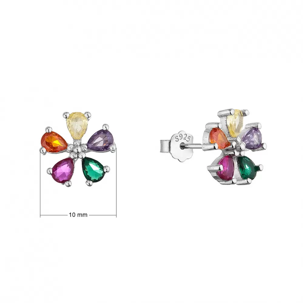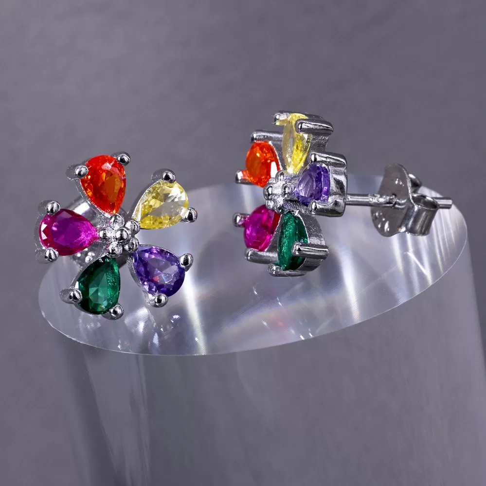 Stříbrné náušnice barevné kytičky 11760.1