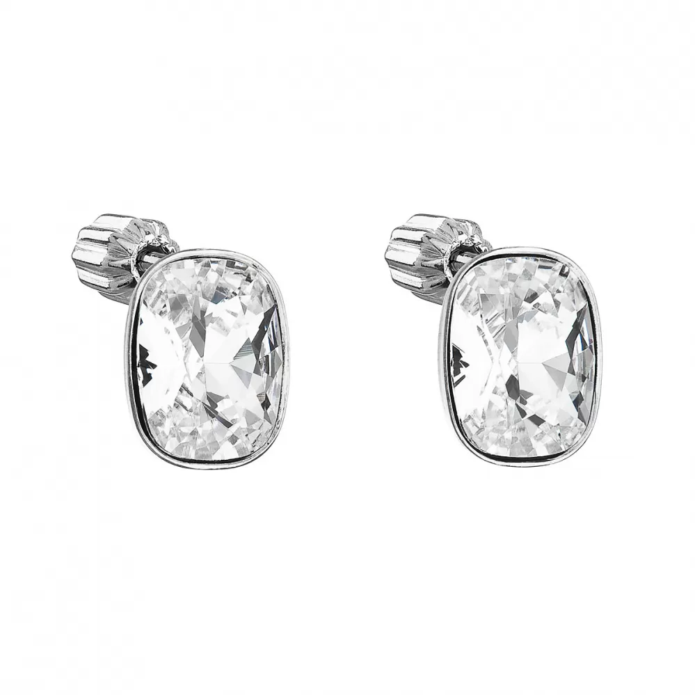 Stříbrné náušnice pecka s krystaly Swarovski bílý obdélník 31279.1